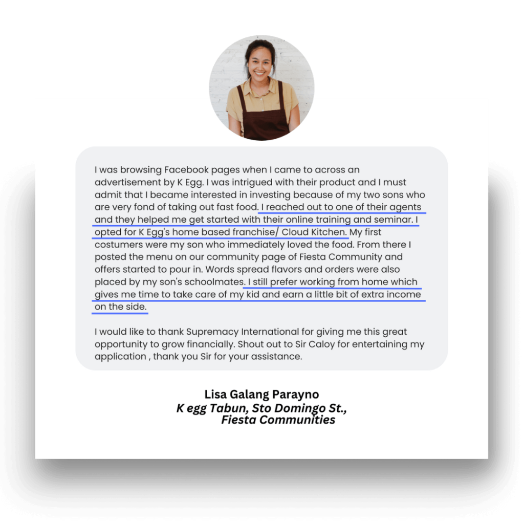 Maraming nagdaan sa ganitong worries, at nandito kami para suportahan ka. Kaya, wag na magdalawang-isip. With Supremacy Franchise, pwede mong simulan ang negosyo mo nang may minimal risk at maximum support.