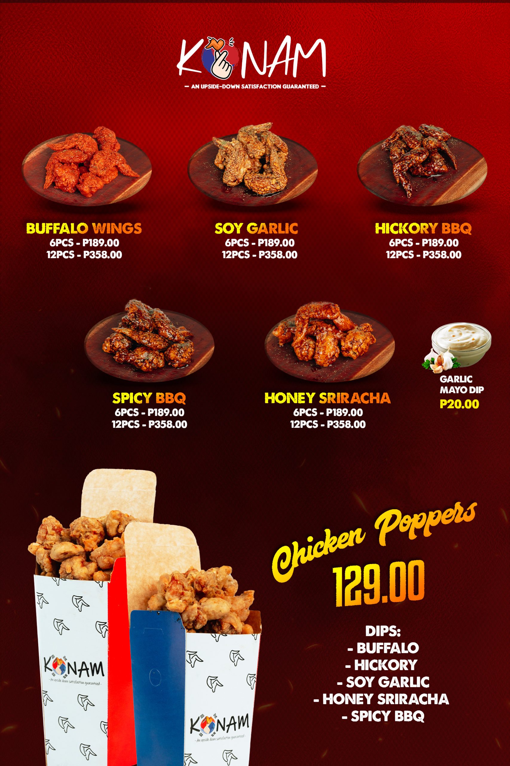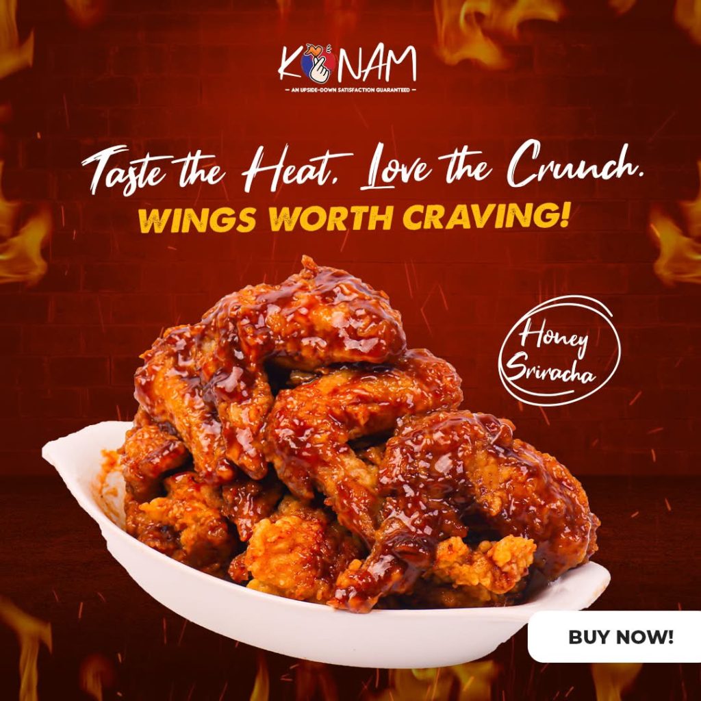 Reach the culinary soft spot of your Korean chicken wings cravings with Konam. Konam brings the distinct taste of Korean fried chicken for an addictively crunchy chicken you cannot say no to.